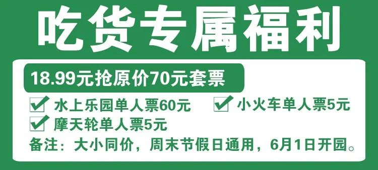 ➤其他备注:费用包含景区游乐设备项目,不含园区内储物柜租赁,游泳圈租赁及其他二次消费详情请参阅现场告示);部分设备有身体条件限制,以现场公示为准;水乐园暂定6月1日开园,因天气或其他不可抗拒因素以景区实际为准。