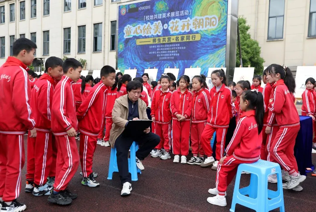 4月16日,“童心绘美·花开朝阳——师生共赏·名家同行”校地共建美术展览活动在遵义市朝阳小学东都校区举行,区文联、区美术家协会特邀画家与学校师生齐聚操场,共赴一场艺术与成长的“双向奔赴”。