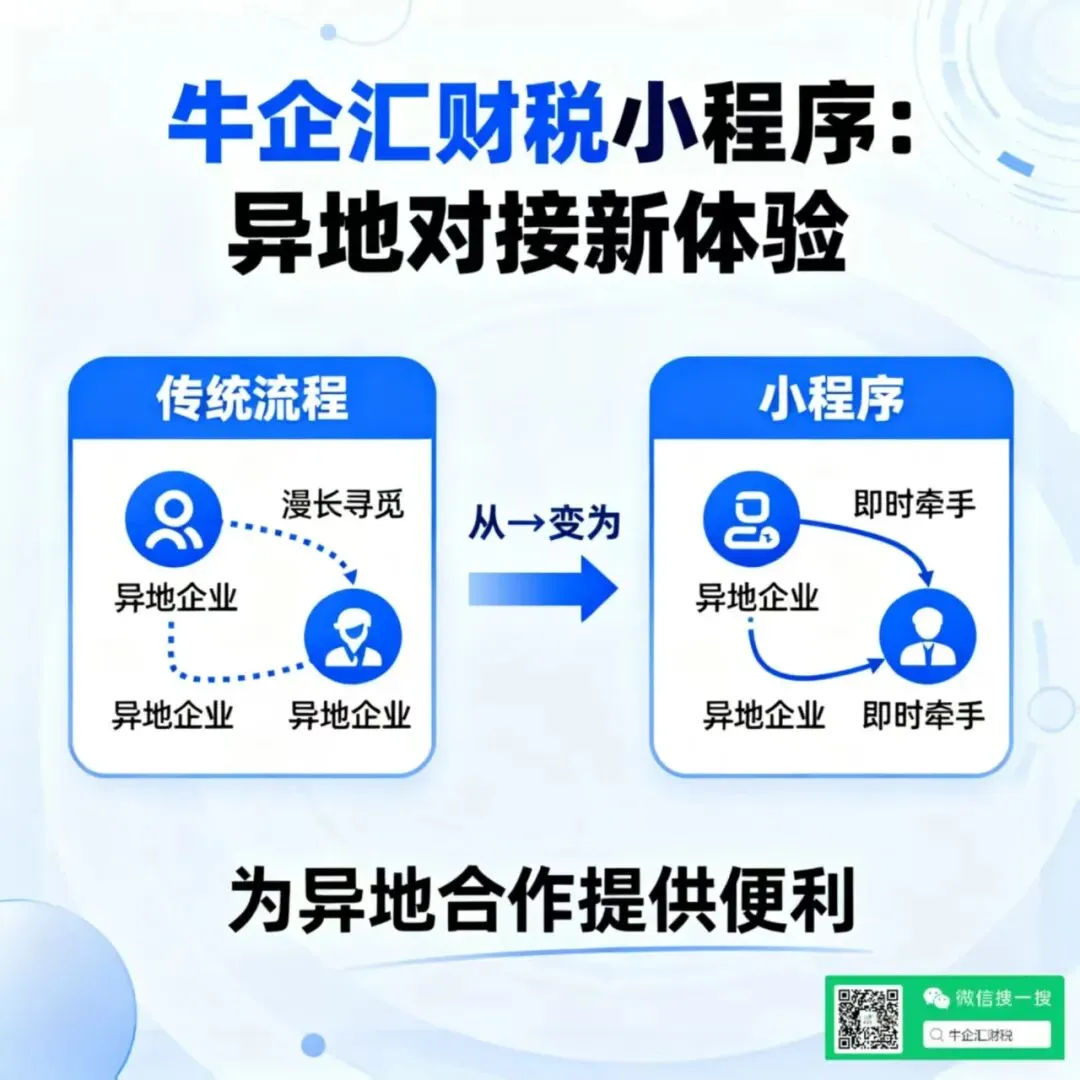 行业兴则企业兴,企业强则行业旺。牛企汇财税小程序以标准化打破行业壁垒,破解财税服务行业同质化、地域化困境,推动行业从人力密集型向技术密集型跨越;以专业化筑牢合规防线,为企业财税安全提供坚实保障,助力企业轻装上阵、稳健发展。未来,牛企汇将持续深耕财税服务领域,优化标准化体系、提升专业化能力,推动行业规范化、智能化发展,为更多企业赋能,为财税服务行业高质量发展注入源源不断的新活力,构建“企业受益、行业升级”的良性生态。