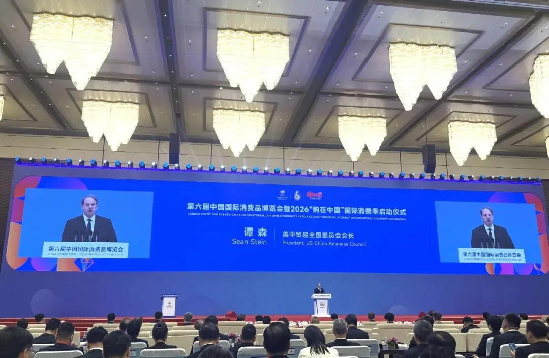 On April 13, 2026, USCBC President Sean Stein delivered opening remarks at the launch ceremony of the 6th China International Consumer Products Expo (CICPE) and the 2026 "Shopping in China" International Consumption Season in Haikou, Hainan.