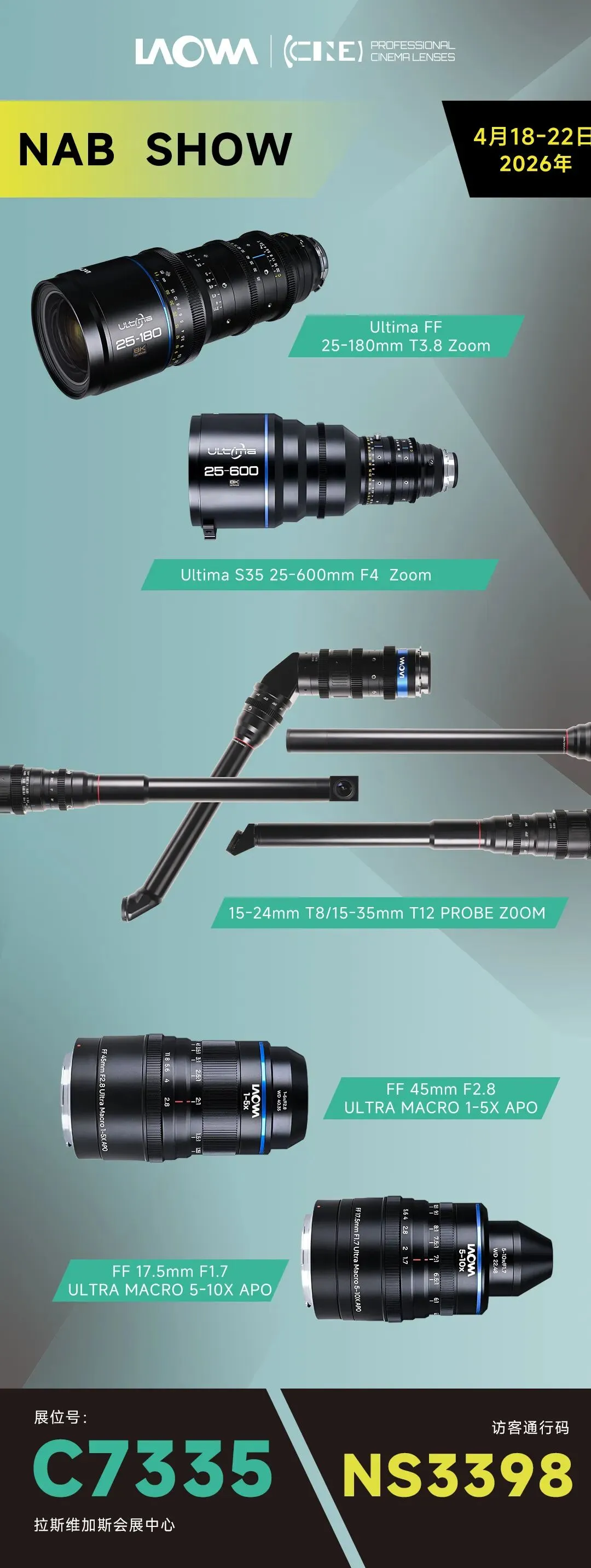 2026 美国 NAB 广播电视展即将启幕,老蛙携多款新品镜头重磅亮相,以专业光学实力,为影视与广播创作带来更丰富的拍摄选择。