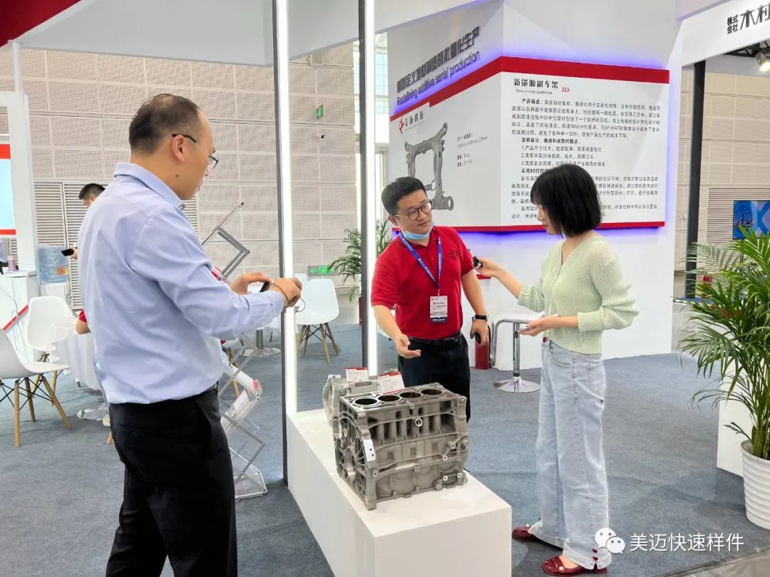 美迈科技携带部分产品亮相展会,展示了新能源汽车一体式副车架、燃油车缸体缸盖等快速样件,吸引了不少参观者驻足观看,共同交流并达成众多合作意向,我们期待新老朋友前来公司进行深入洽谈磋商。