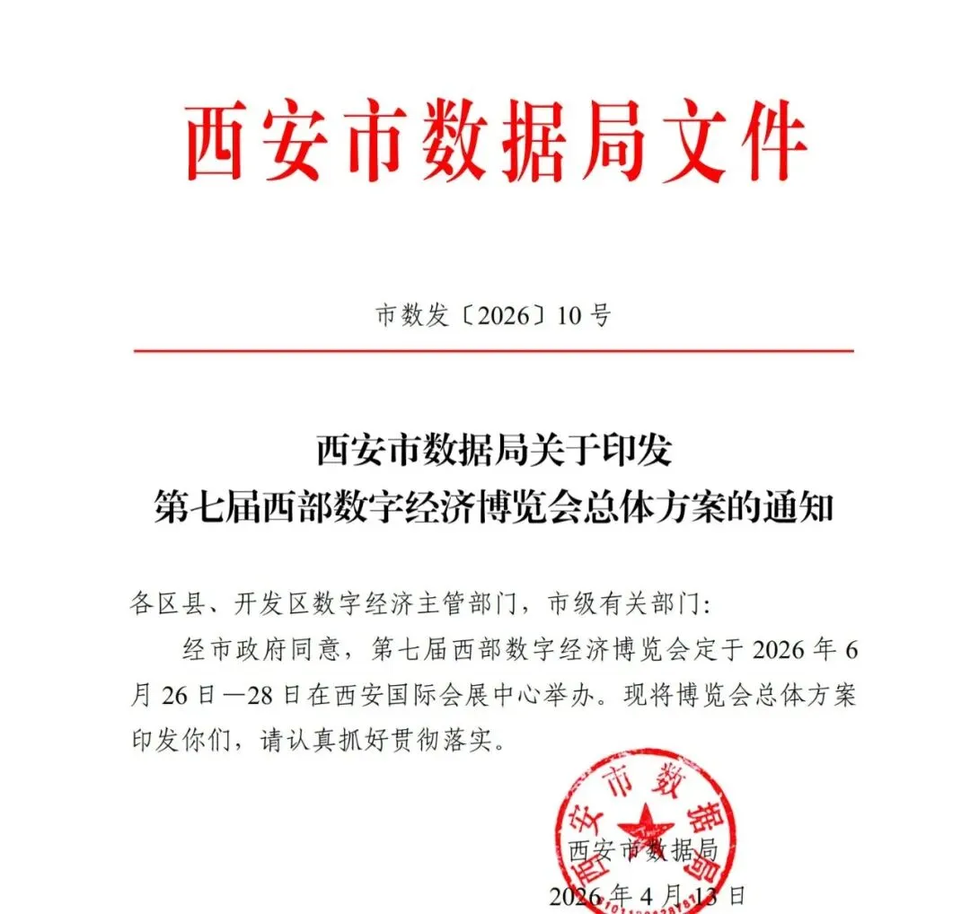 经市政府同意,第七届西部数字经济博览会定于2026年6月26日—28日在西安国际会展中心举办。现将博览会总体方案印发你们,请认真抓好贯彻落实。