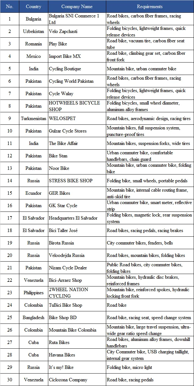 2026中国国际自行车展将于5月5-7日,在内广场跨国采购洽谈区,举行多场跨国采购洽谈会,每场会议组委会将邀请30家境外采购商到现场与参展企业交流、洽谈。希望在展期帮助参展企业,实现与海外市场的高效对接。采购品类包含自行车整车及零配件、电动车整车及零配件等。