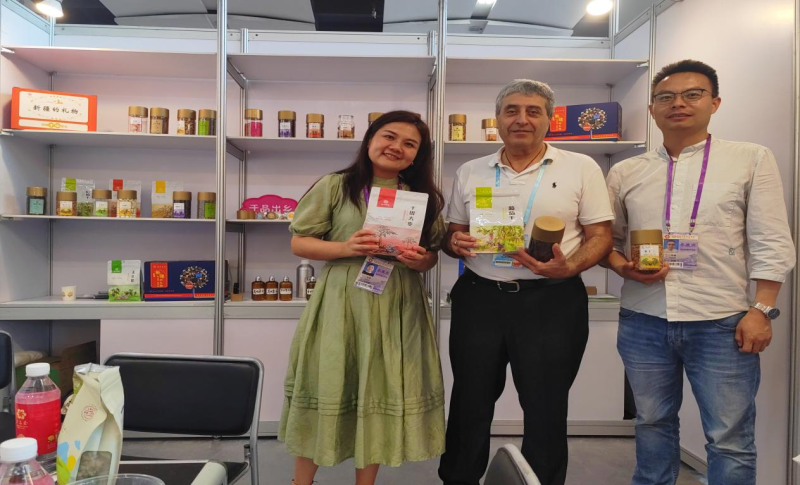 “在这次进出口商品交易会上,我们共有100多种优质农副产品参展,其中肉苁蓉提取物、玫瑰花、玫瑰花酱、玫瑰纯露、玫瑰精油等产品最受欢迎。”于田县阿热勒乡风兮果园合作社副总经理王刚说。