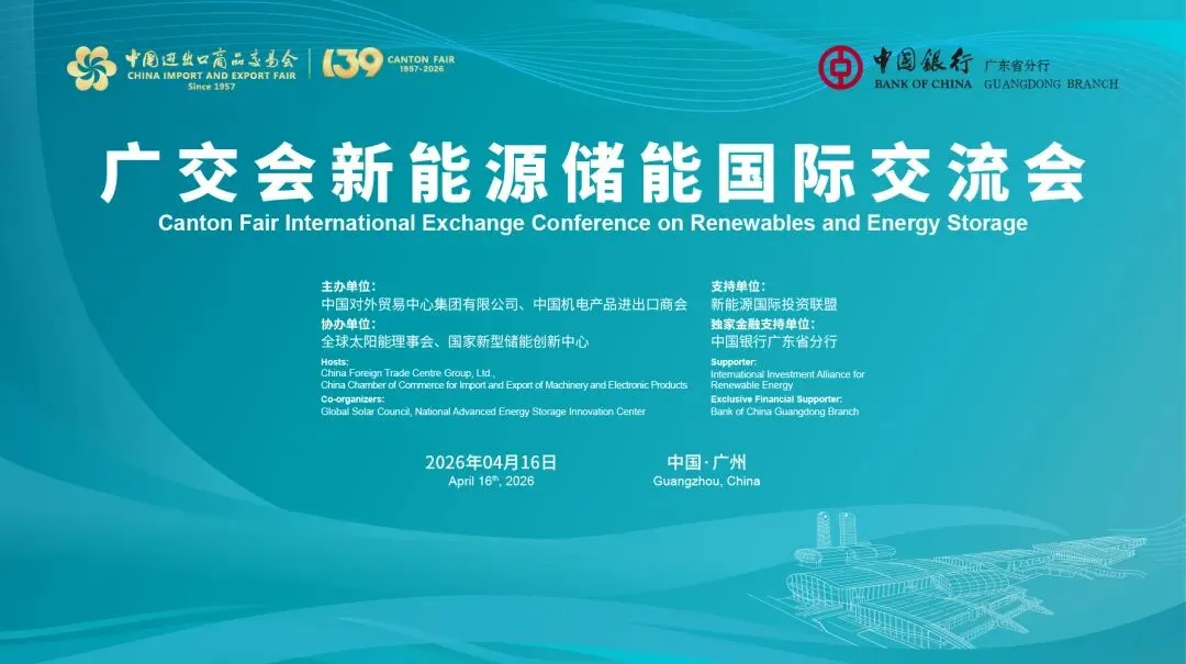 4月16日,“广交会新能源储能国际交流会”在广交会堂会议大厅正式举行。本次交流会由中国对外贸易中心集团有限公司、中国机电产品进出口商会共同主办,全球太阳能理事会、国家新型储能创新中心协办,并获新能源国际投资联盟、中国银行广东省分行支持。活动以“集智共赢,绿动未来”为主题,旨在打造集政策解读、产业对话与全球资源对接于一体的高端平台,助力中国新能源储能企业融入全球绿色供应链。