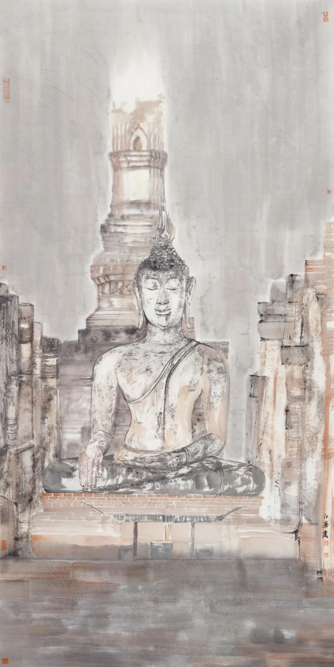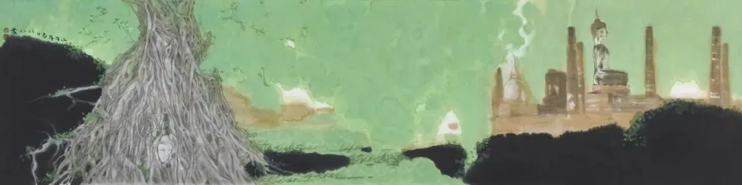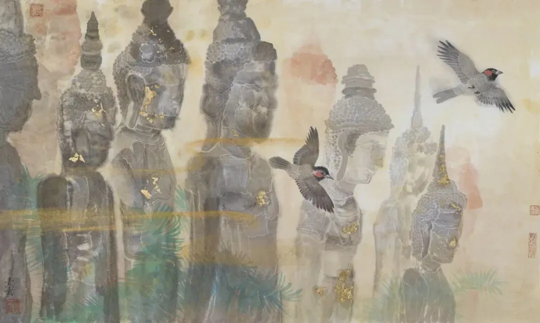 ผู้สร้างสรรค์ผลงาน: Wu Jianชื่อผลงาน: ร่องรอยแห่งอาณาจักรปยูวัสดุ: ภาพวาดหมึกจีนลงสี
