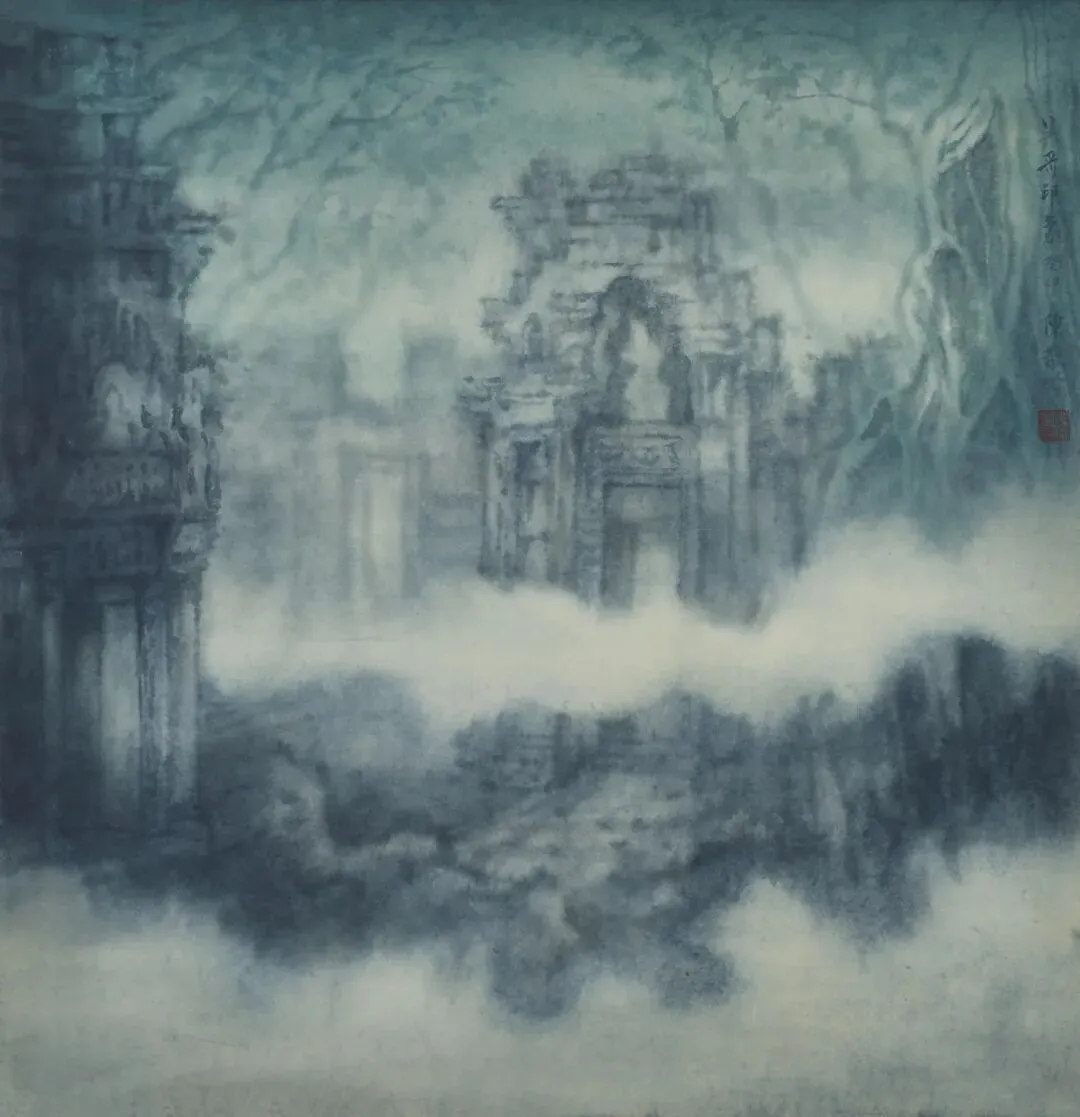ผู้สร้างสรรค์ผลงาน: Guo Ziliangชื่อผลงาน: ความประทับใจต่อนครวัดวัสดุ: ภาพวาดหมึกจีนลงสี