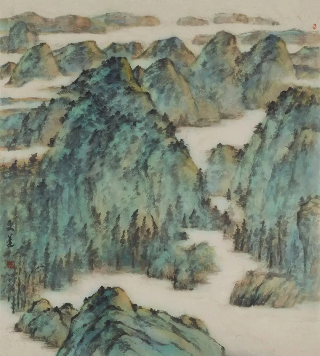 ผู้สร้างสรรค์ผลงาน: Cha Lyuชื่อผลงาน: ความงามอันนิรันดร์ของไร่ชานับหมื่นไร่วัสดุ: ภาพวาดหมึกจีนลงสี
