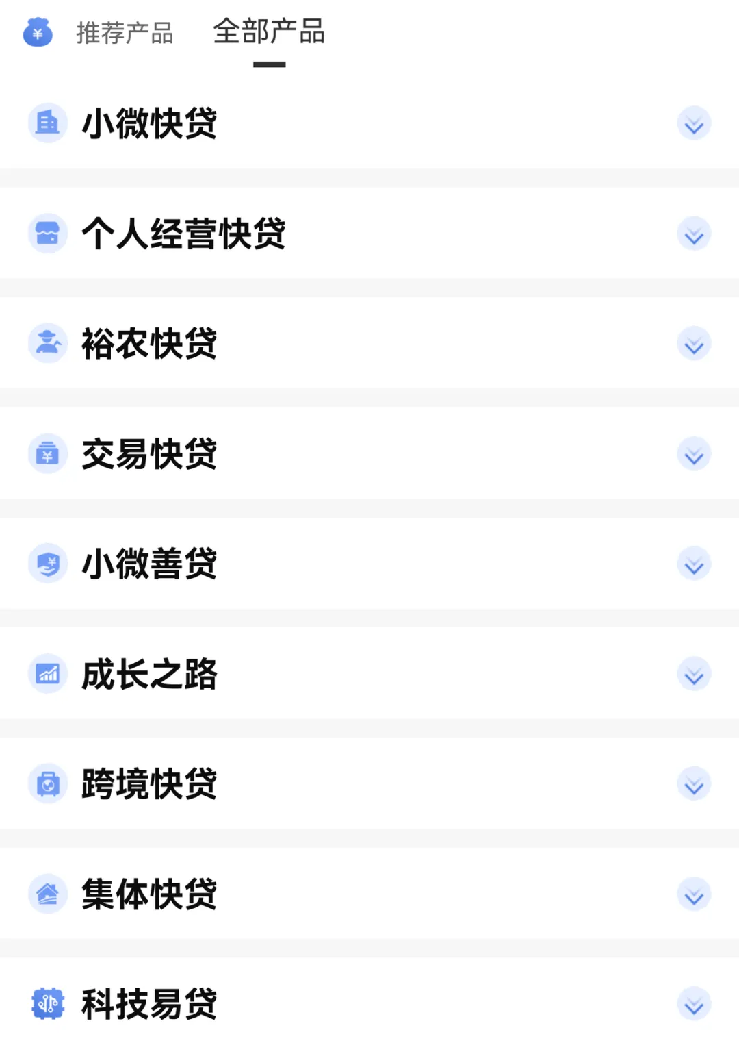 利率分层清晰:从1.5%的政策性低息贷,到3%左右的常规快贷,再到3.7%起的涉农贷,不同需求都能找到对应的成本档位。 额度跨度极大:从农户30万小额周转,到交易快贷/科技易贷3000万大额扩张,覆盖从个体工商户到规模企业的全场景。 客群精准匹配:按企业、个人、涉农、外贸、科创、集体等场景划分,每个客群都有专属产品,不用再大海捞针。 办理便捷度拉满:多数产品支持线上申请、随借随还,部分票据类、信用类产品可实现秒批秒贷,适配老板们的急用钱需求。