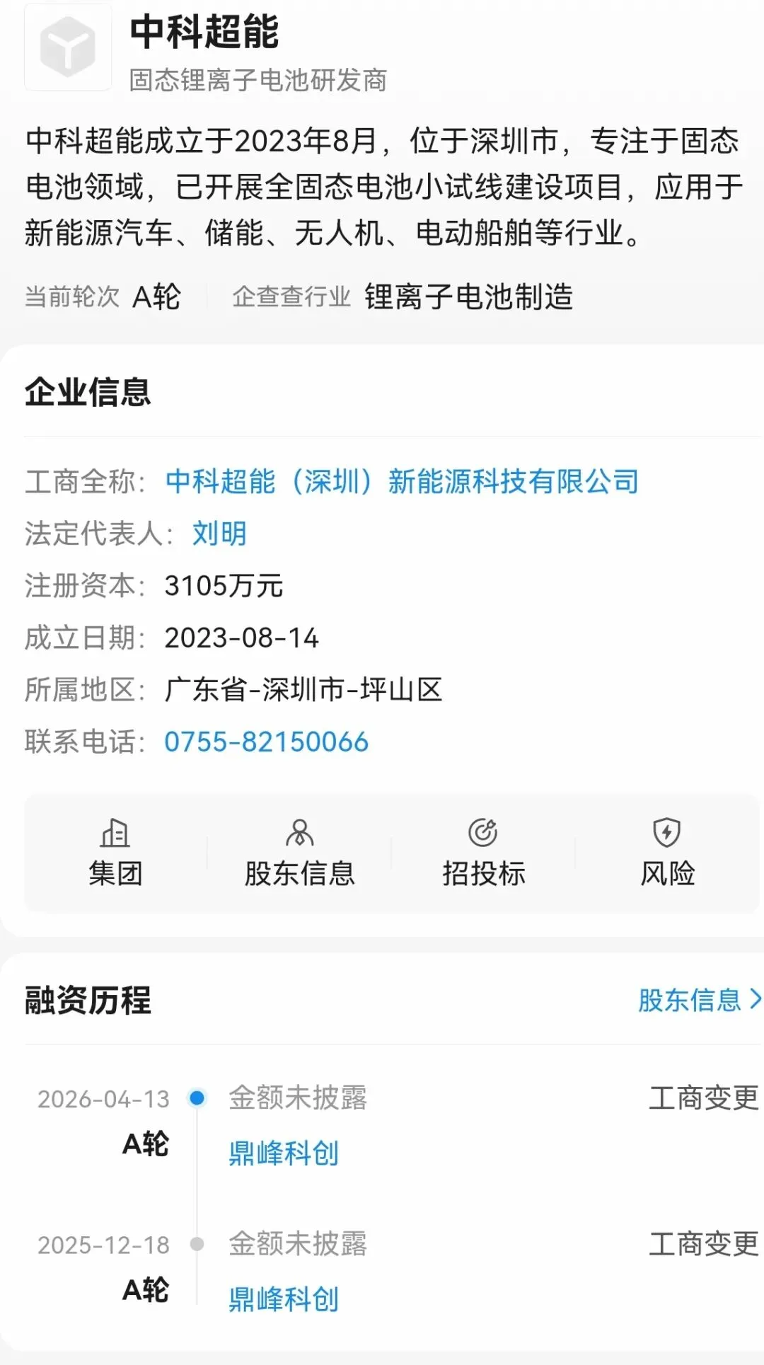 2026年4月完成A轮融资,投资方包括鼎峰科创,资金将用于加快中试线建设。其技术特点包括自主开发的“原位固态化”技术,能实现原子级界面融合,提升电池循环寿命与安全性。