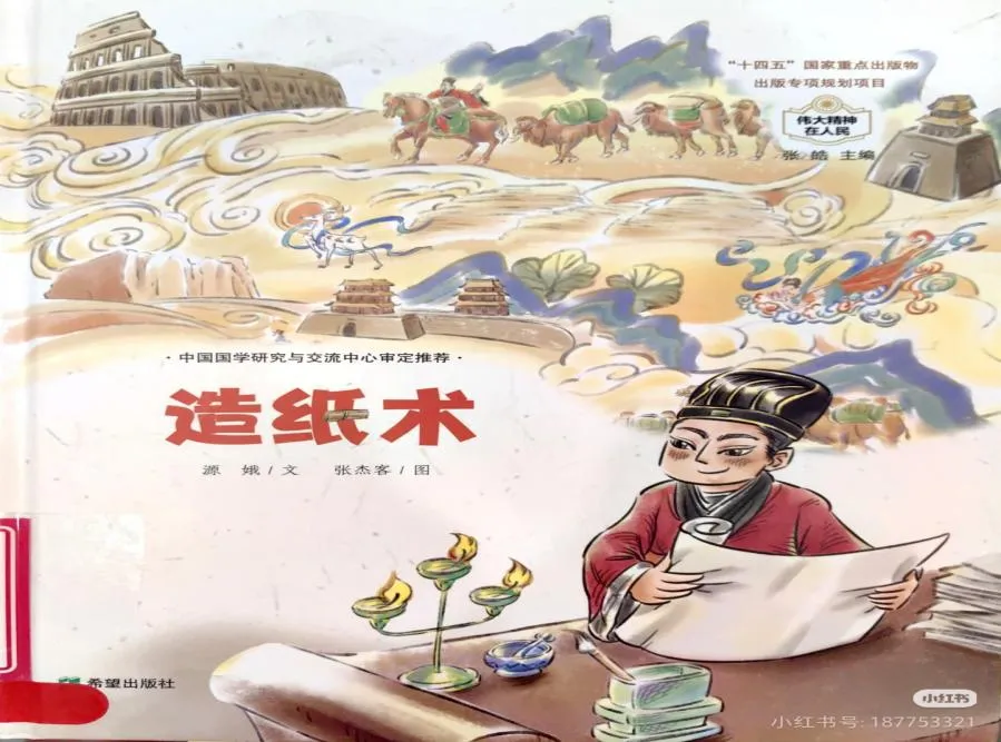 《造纸术》这本绘本以生动的图文形式,讲述了东汉时期蔡伦改进造纸术的传奇故事。从简牍的笨重到“蔡侯纸”的诞生,孩子们将跟随蔡伦的脚步,见证他如何利用树皮、麻布、渔网等普通材料,通过“剪剪切切”“泡一泡煮一煮”“抄纸”等趣味步骤,最终创造出轻薄实用的纸张。