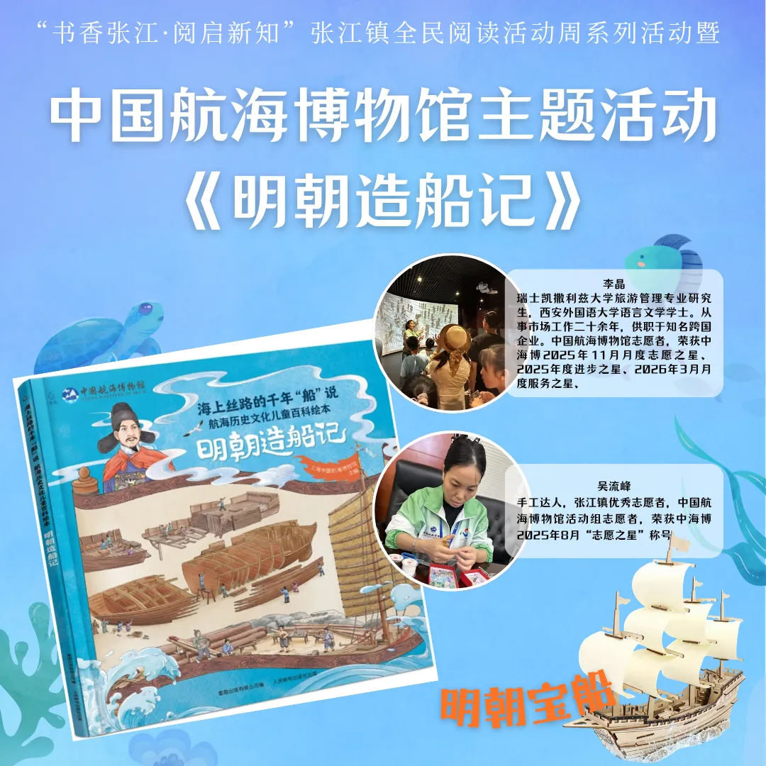 海上丝路的千年“船”说之《明朝造船记》通过真实历史人物李昭祥(1512—1572年)于明嘉靖年间任南京工部都水司主事的经历,展现我国明朝南京龙江船厂的规模、组织构成,以及船只勘验、船料采买、龙骨搭建、水密隔舱建造、船体拼装、竹帆安装、成品核验等古船制造的关键步骤,体现了我国古船制造的精湛工艺与技术革新。活动将带领亲子家庭在本书引导下穿越回明朝,化身“小小造船师”,一起探索郑和宝船背后的黑科技;一起揭秘古代工匠如何运用智慧解决造船难题,就像一场跨越时空的“工程挑战赛”,感受中华文明历史长河中灿烂悠久的航海文明和波澜壮阔的海洋文化,手工环节将带领大家亲手搭建一艘“明朝宝船”,沉浸式体验明朝造船过程!