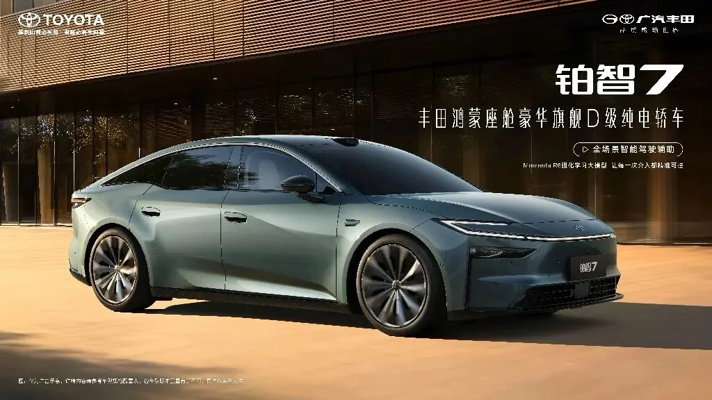 铂智7是广汽丰田推出的中大型纯电轿车,车身尺寸5130×1965×1506mm,轴距3020mm,采用溜背轿跑设计。搭载华为DriveONE 207kW电机(320N·m),CLTC续航600-710km,快充30%-80%≤24分钟 。全系标配鸿蒙座舱5.0,搭载Momenta R6智驾,支持城市/高速领航。配备双腔空气悬架+SDC减震,路面预瞄功能自动调节悬挂软硬。目前已正式上市指导价169800起,现在下定享12项权益,旧车置换补贴最高15000元,5年免息金融方案。