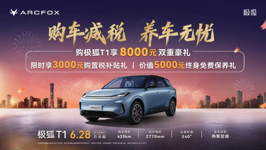 作为北汽集团高端品牌,极狐T1颜值、空间、品质、好开、安全五大亮点拉满。贯穿式大灯搭配6种个性配色,颜值前卫吸睛;2770mm超长轴距,459L大后备箱,2.34㎡全景天幕,家用出行、露营野餐全场景适配。内饰采用零醛零苯健康座舱,15.6英寸中控屏+带加热通风的云感座椅,舒适拉满。搭载高铁同源电驱,1度电跑10km,425km真实续航,17分钟快充30%-80%;540°全景影像+随心转功能,城市穿梭、窄路停车轻松拿捏。更有三电终身质保、终身免费保养、国企大厂出品,品质安心。