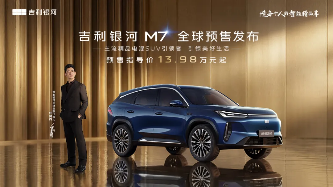 吉利银河M7定位主流精品电混SUV,预售价13.98万-15.68万,含130km探索版、225km探索+版、225km星舰版三款。搭载1.5L插混系统,纯电续航最高225km,综合续航1730km,馈电油耗低至3.35L/100km。全系标配神盾金砖电池、GEA Evo架构,麋鹿测试81km/h,操控稳、安全强。内饰配15.4英寸2.5K大屏、Flyme Auto 智能座舱,23扬Flyme Sound音响可选,空间宽敞、智能拉满。