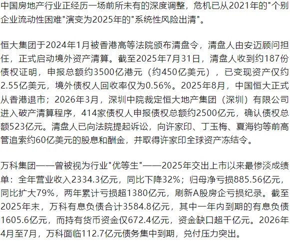 一、危机全景:从恒大清盘到万科巨亏的行业性崩塌