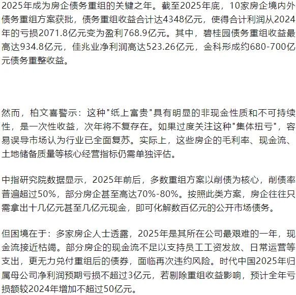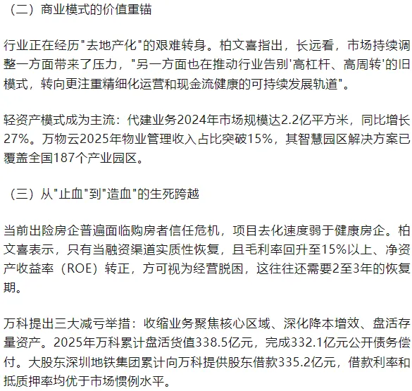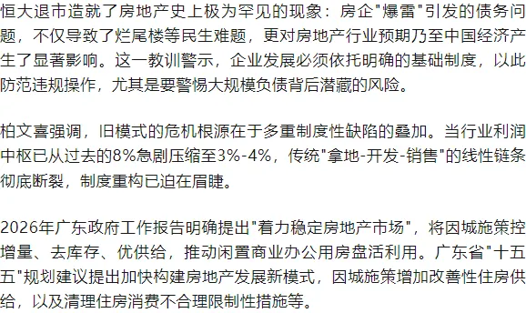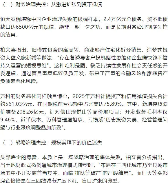 恒大、万科等头部房企的出险、爆雷与清算,是中国房地产行业从野蛮生长走向成熟理性的阵痛。柏文喜所揭示的旧模式弊端——高周转、高杠杆、短视思维、风控缺失——不仅是企业治理的教训,更是整个行业发展模式的深刻反思。