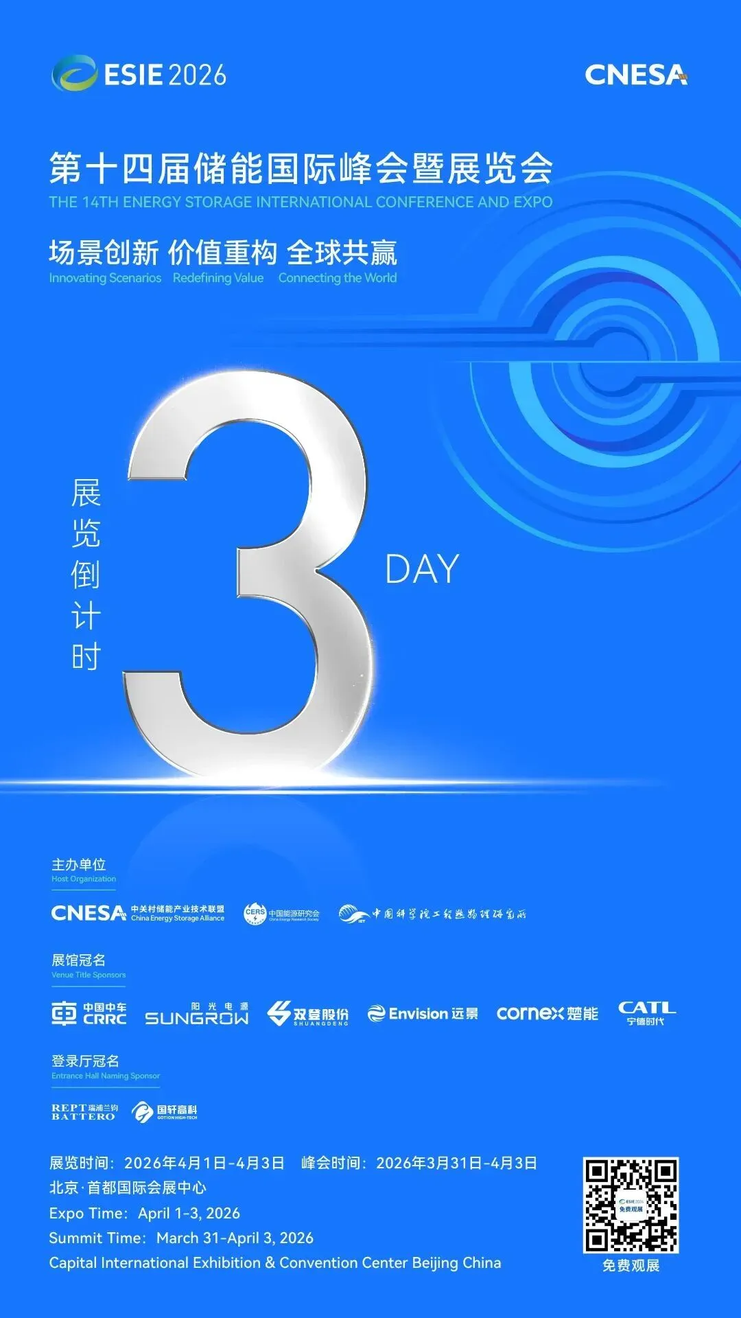 将迎来20万+人次来自政府机构、监管单位、科研院所、电网公司、发电集团、系统集成商、储能技术提供商、储能配套设备提供商、能源运营商等行业同仁齐聚ESIE 2026!