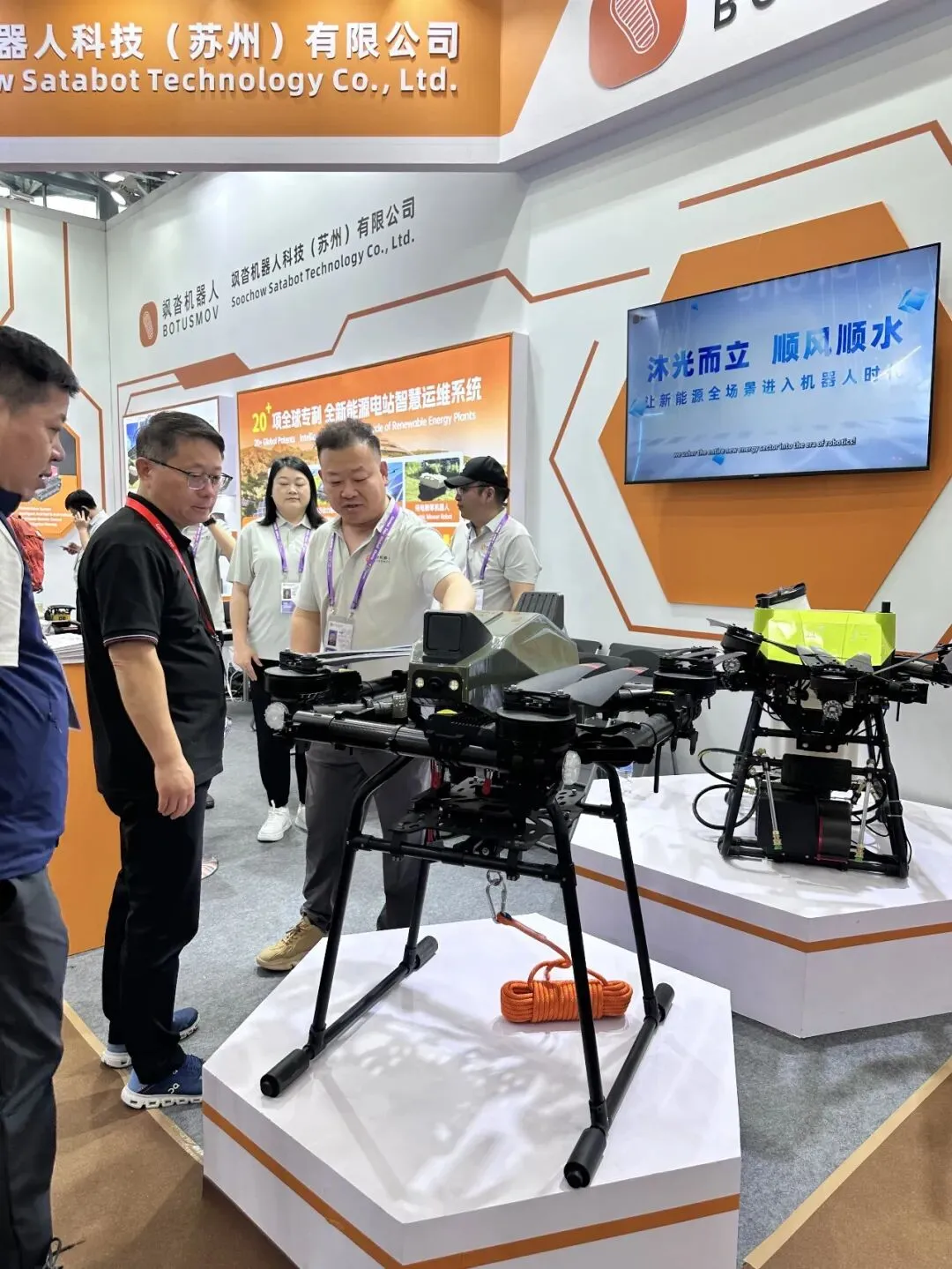 与单一产品陈列不同,飒沓机器人更强调应用场景的直观呈现。展台通过动态演示,将割草机器人、光伏清洗无人机等设备融入实际作业逻辑中,让客户能够“看懂设备是怎么干活的”。