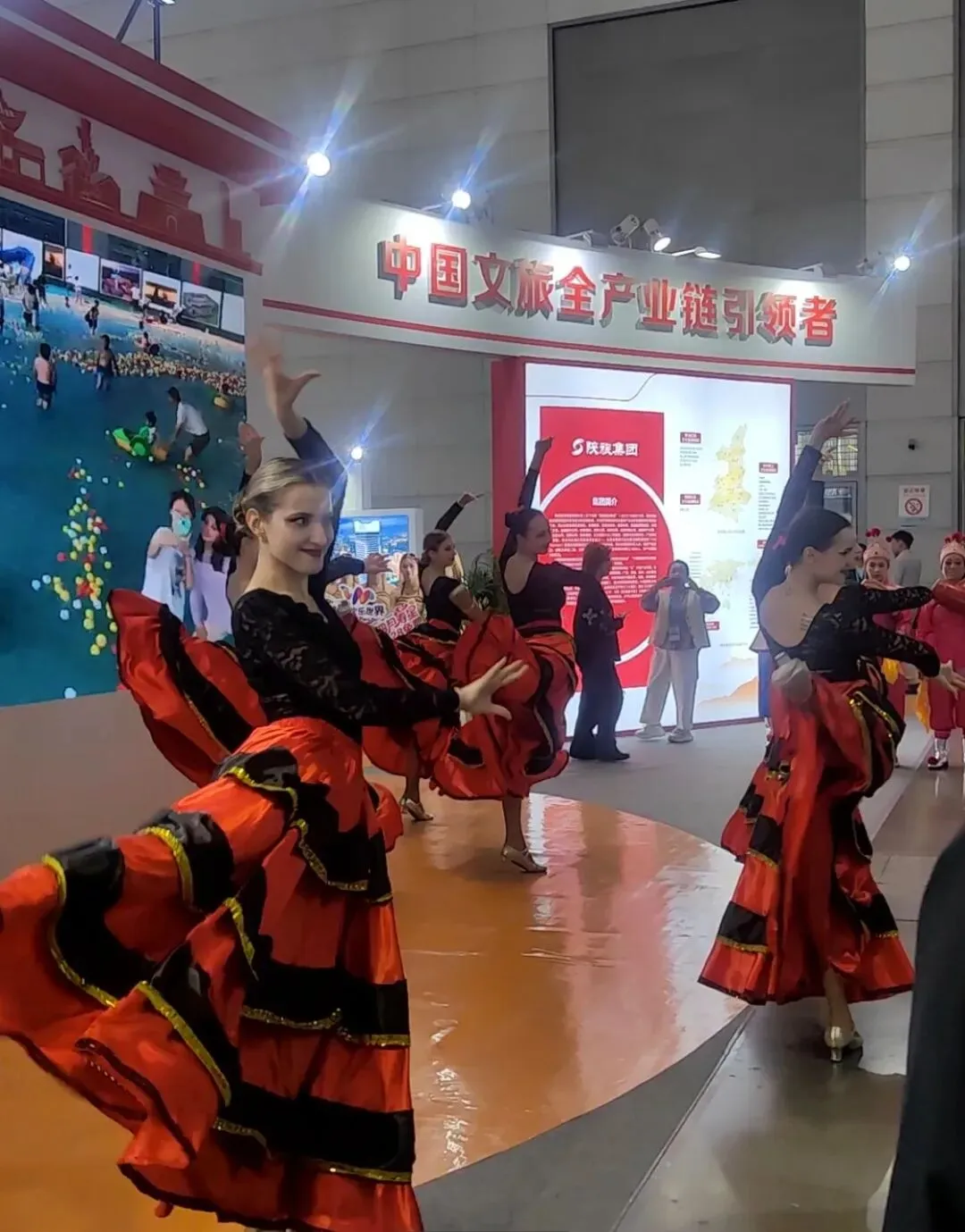 展会现场的文艺展演更是一大亮点,各类特色表演轮番上演,精彩纷呈。本土民俗歌舞温婉动人,尽显陕西本土民俗文化的韵味;不同民族的特色歌舞活力满满,展现着多元的民族文化风情。外籍表演团队也带来了精彩的舞台演出,优雅的舞姿、大方的演绎,尽显异域文化特色,与本土文化交相辉映,完美诠释了丝绸之路文化交流、文明互鉴的主题,现场氛围热烈又祥和。