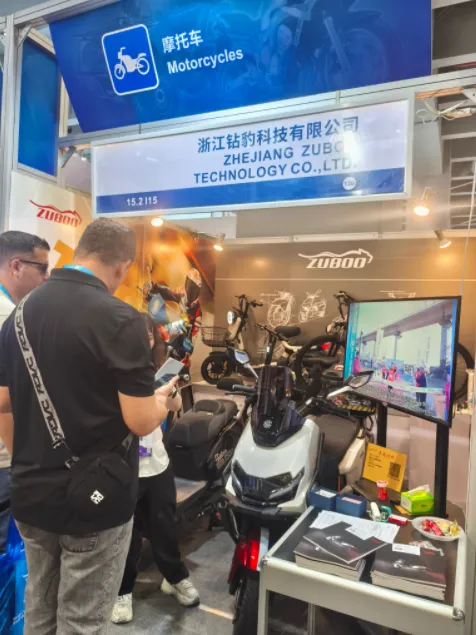 立足 20 周年技术积淀,五星钻豹携E8,N80等多款旗舰车型亮相广交会,为 200 万目标与全球拓展强势赋能。其中,E8该车搭载222型35H超能电机与黑金刚控制器,动力强劲、续航出众;配备前后对置缸静音双碟刹,制动安全高效;搭载智远3.0智能系统,兼顾智能操控与出行安全,搭配星际LED大灯、可调液压减震等硬核配置,实现动力、续航、智能三重突破,精准适配全球多元出行场景。