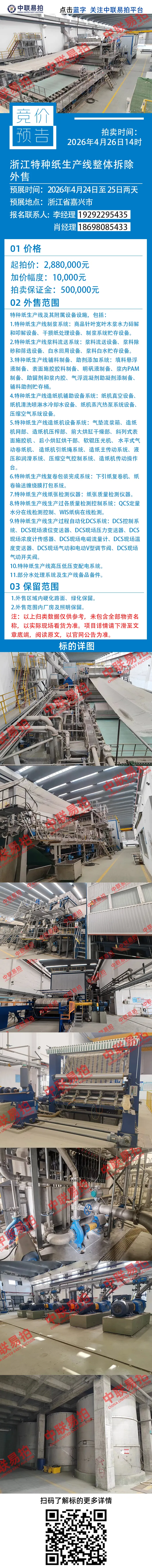【浙江】288万起拍,特种纸生产线整体拆除外售