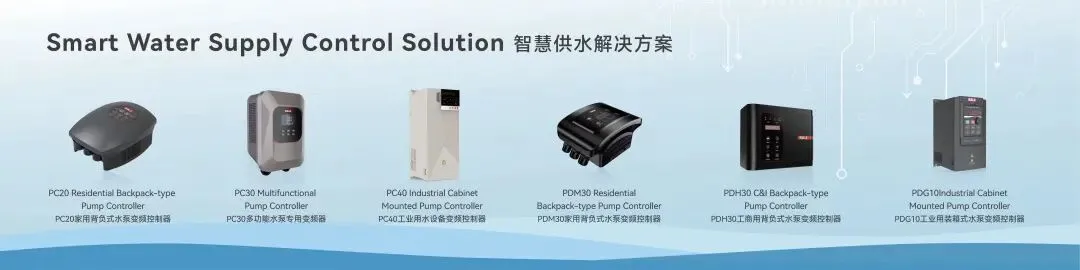 以水泵专用变频器为核心:PC20、PC30、PC40、PDM30、PDH30、PDG10系列产品,构建从家用供水到市政水务、工业水处理的全场景供水控制方案,实现恒压供水、多泵联动、远程监控一体化,大幅降低水务系统能耗与运维成本。