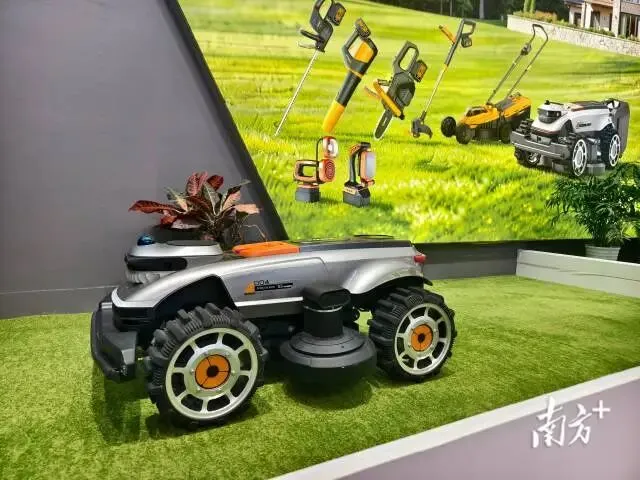 在新宝股份的展位,一款智能割草机器人吸引客商关注。新宝股份CMO助理谢水生介绍,这是新宝股份全面升级的新品,搭载全地形自适应系统,通过智能自适应技术征服复杂地形,实时监测并绕过障碍物,远程启动割草任务。