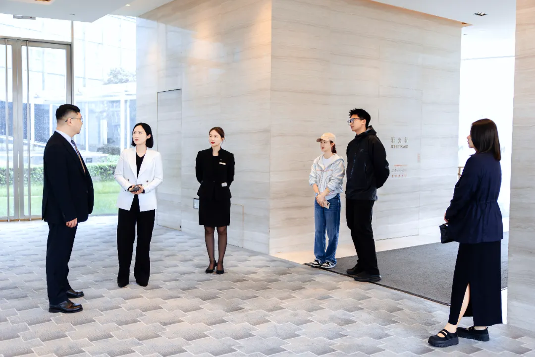 活动现场,尼依格罗酒店以热情周到的服务迎接一行人到访,老友相聚的暖心氛围贯穿全程。一行人实地走访酒店核心宴会空间,罗马宴会厅的天际景致、茵园礼堂的全幕墙玻璃设计,每一处细节都成为交流焦点。
