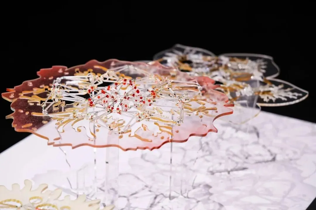 从自然肌理中提炼共生之我。珠串模拟出细胞的形态,3D打印笔勾勒出柔韧的组织结构。作品轻盈而充满生命力,探讨着微观结构与宏观存在之间的神秘共鸣。