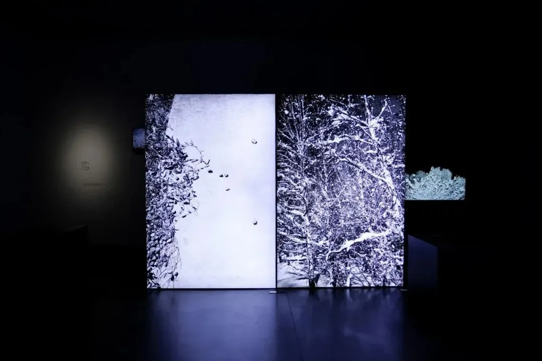 凝视草痕,定格永恒之我。画作让人静心,而展厅中的声控装置尤为治愈:轻轻敲响木鱼,屏幕上的青草便随之缓慢生长——你的每一次叩问,都能唤醒一片生机。