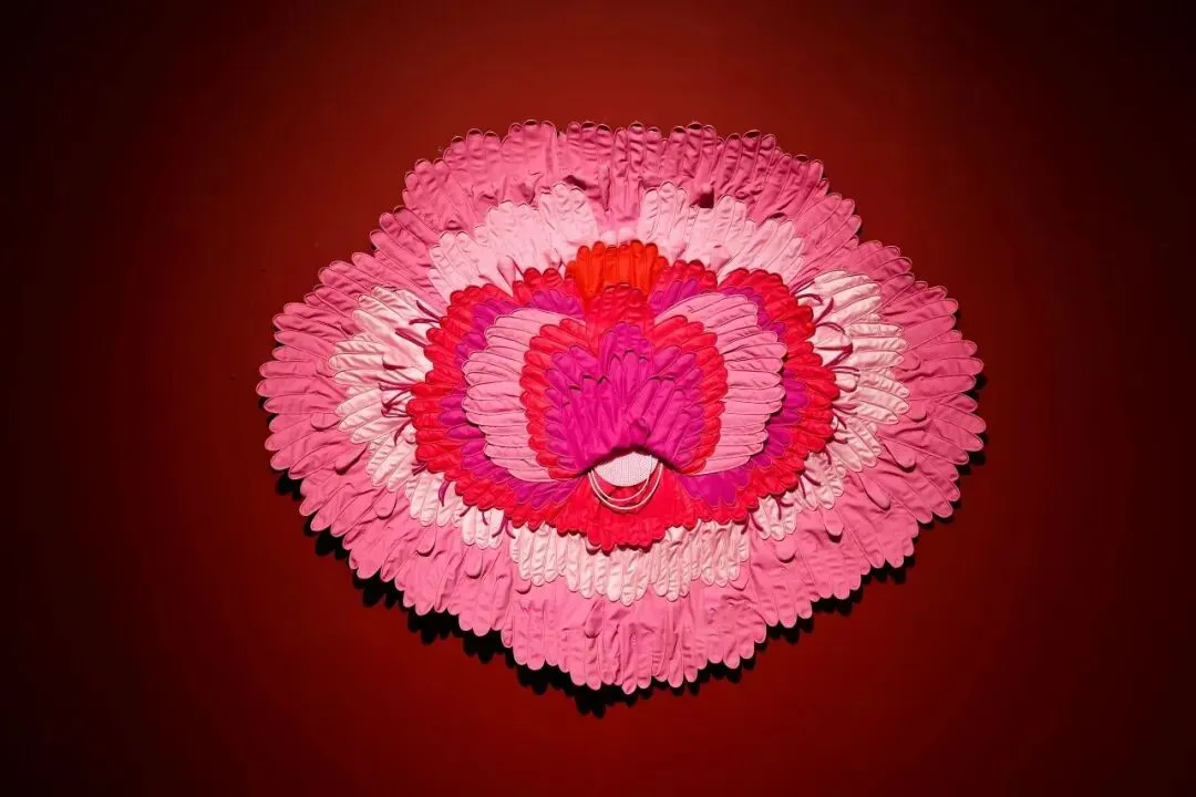 将妈妈们做家务的橡胶手套缝制成花朵。柔软的材质与日常的坚韧形成对话,褪色的过程,犹如致敬那些在岁月操劳中悄然老去的温柔力量。