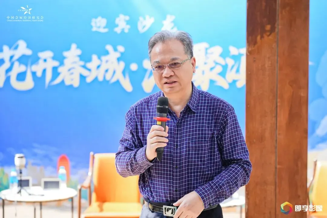 中国会展经济研究会副会长兼秘书长姜淮、中国会展经济研究会首席研究员储祥银、智海王潮传播集团总裁谌立雄、北京苦瓜网络科技有限公司董事长潘涛等嘉宾齐聚一堂,在轻松雅致的氛围中展开深入交流,共话会展图景。