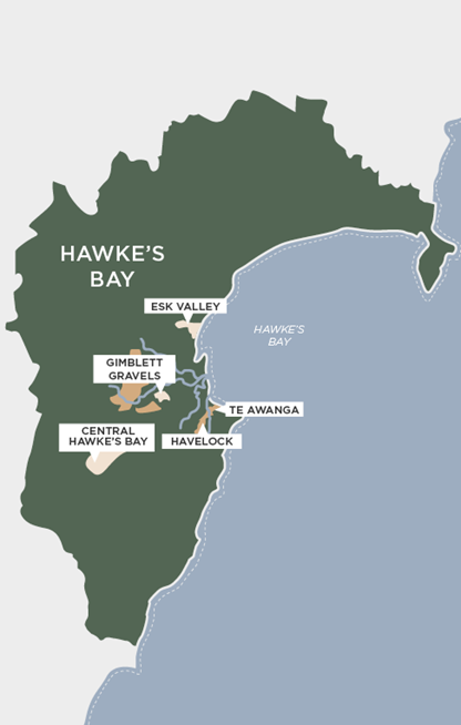 靠近海岸的艾斯克谷(Esk Valley)和 蒂阿旺加(Te Awanga)也拥有砾石的土壤,由于海洋的调节,这里出产优秀的霞多丽、灰皮诺和黑皮诺。霍克湾中部的葡萄园海拔较高,相对比较凉爽,同样出产有潜力的长相思、灰皮诺和黑皮诺。