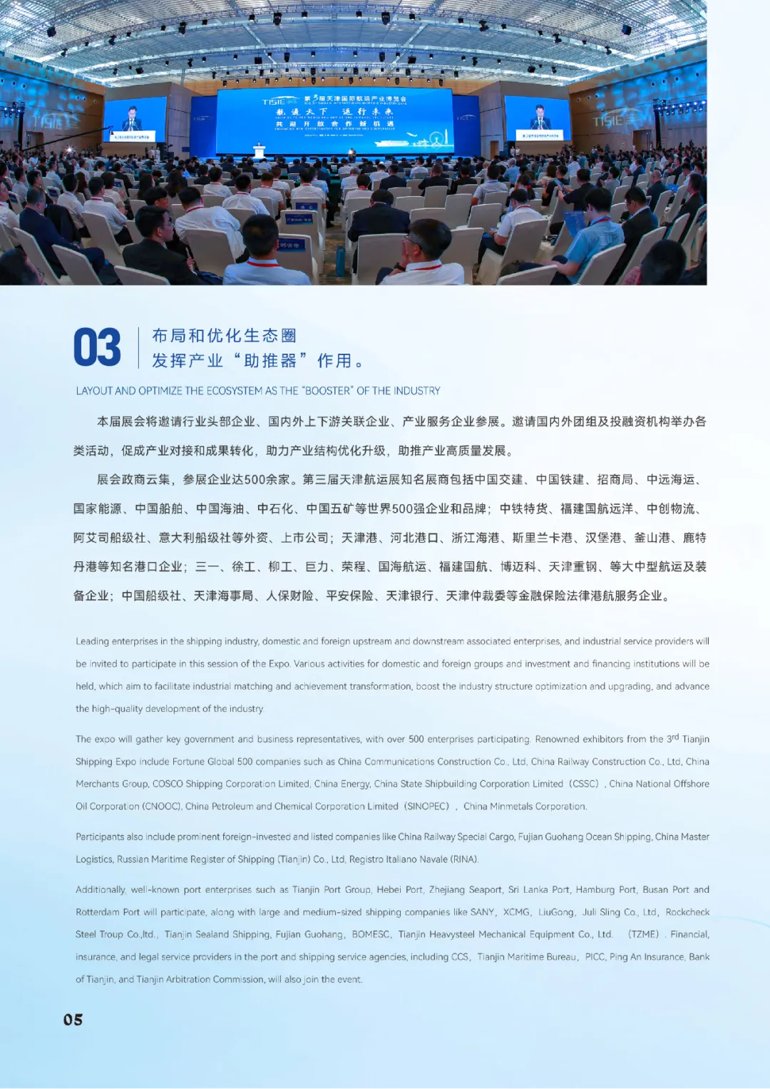 航运是经济社会发展的重要基础,也是国际贸易的重要桥梁和纽带。根据国际海事组织数据,航运行业在全球贸易中占比超过80%。为打造世界一流的智慧港口、绿色港口,更好服务京津冀协同发展。天津作为北方最大的沿海开放城市、环渤海经济中心,已连续成功举办三届国际航运产业博览会,2025国际航运展吸引来自22个国家和地区的近500家航运龙头企业及6万专业观众,成果丰硕。