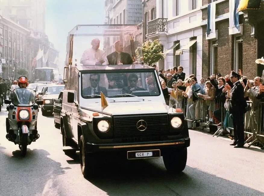 这台 G 级的原型,是为教皇约翰・保罗二世量身打造的专属座驾,堪称汽车史上最具标志性的 “教皇车” 之一。