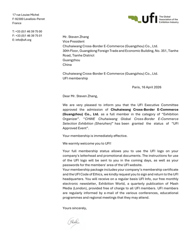图:CHWE全球跨境电商展【UFI会员证书】