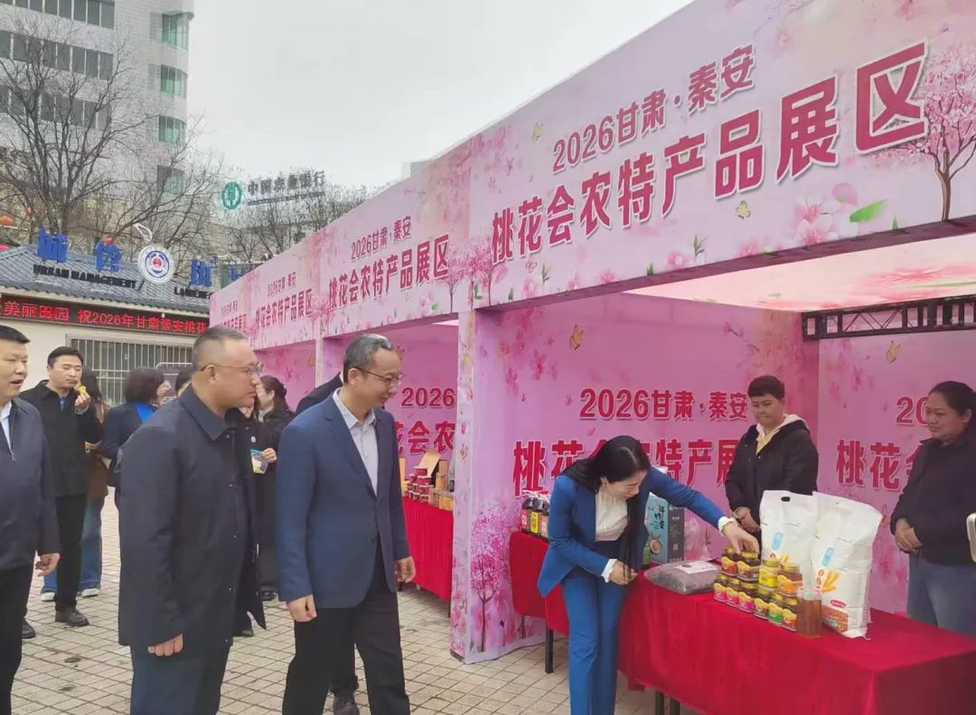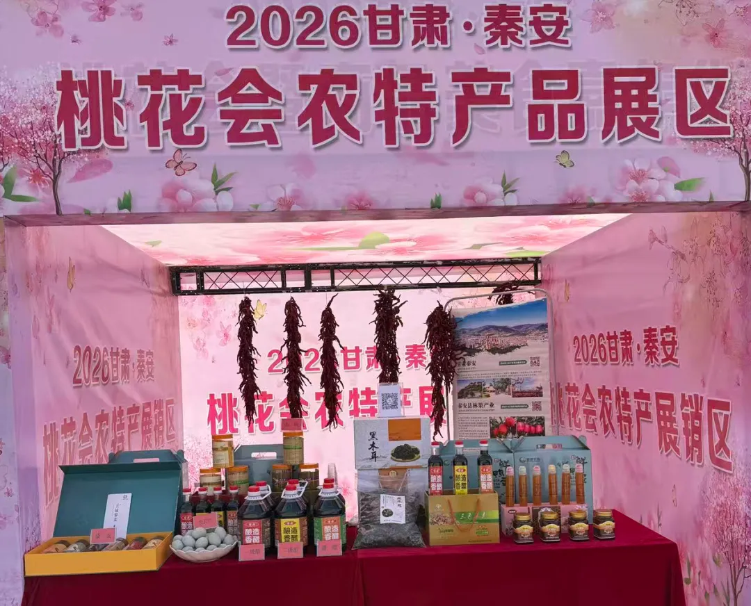 春风送暖,桃韵秦安!2026甘肃·秦安桃花会正在火热举办中,为抢抓节会流量机遇,助力秦安农特产品走出田间、走向大众,我公司受县农业农村局、商务局的邀请参加秦安文化广场农特产品展销会,以优质产品、精心布置,为桃花会增添浓郁商贸活力,搭建起秦安农产与市民游客的“连心桥”。