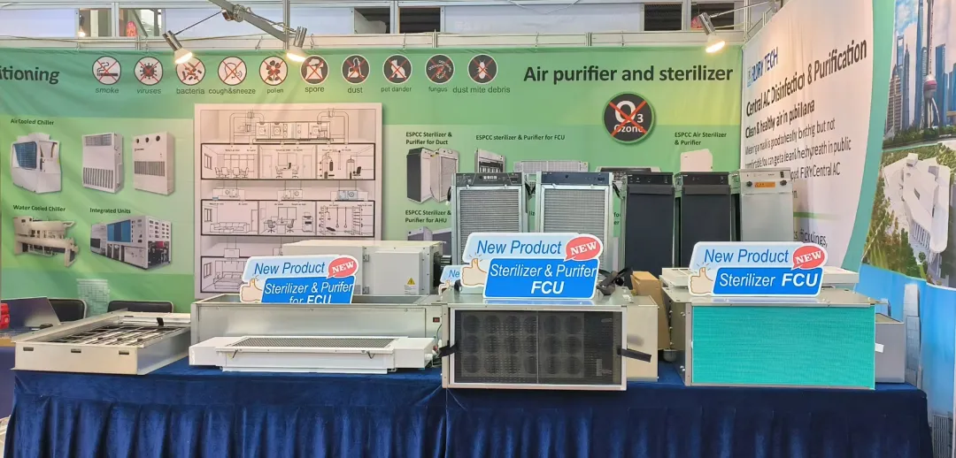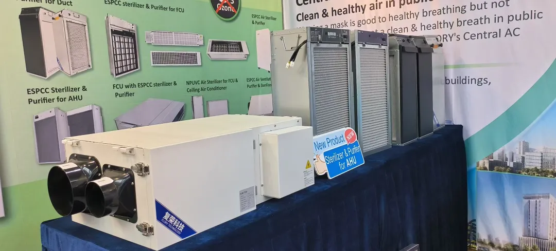 展会上,复荣科技集中呈现全系列ESPCC产品、纳米光触媒产品及耦合催化除臭氧产品,这些产品可适配医院、办公楼、工厂等多场景,为室内空气质量提供多元解决方案。更受关注的是,超薄AHU用空气消毒净化装置(适配商场、写字楼)与风机盘管专用下抽式空气消毒净化装置(专为酒店、公寓设计),进一步完善产品矩阵,以模块化设计、低能耗运行等优势,成为现场技术交流的焦点。
