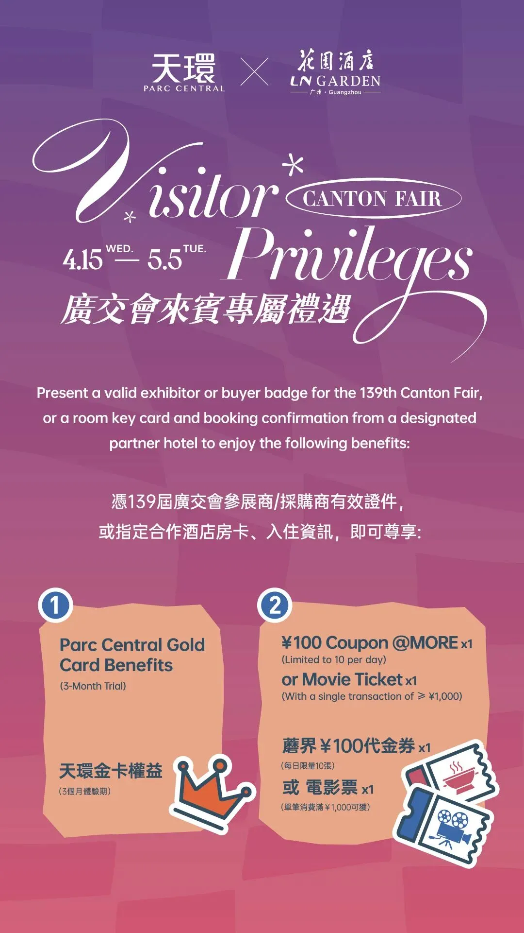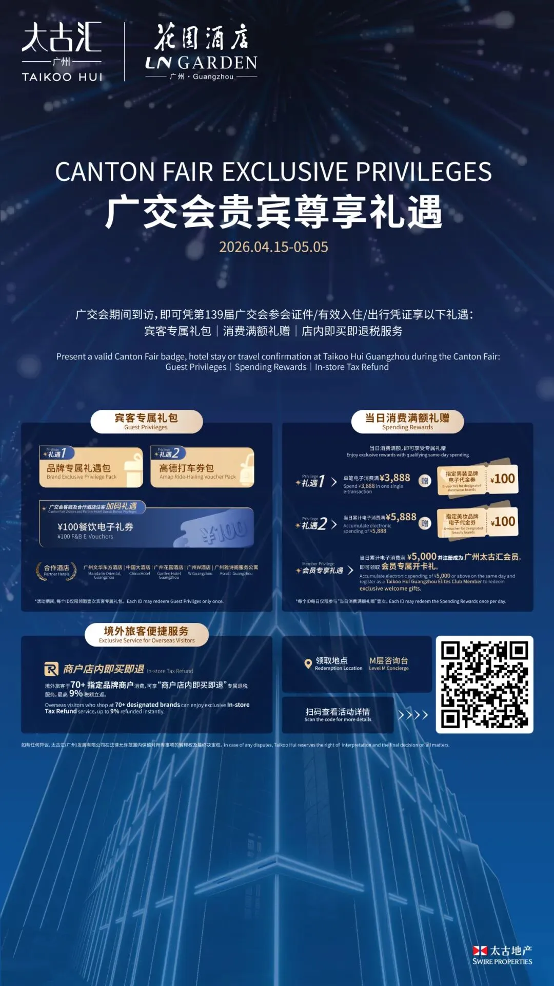 宾客即可在四大高端商场享受专属会员礼遇