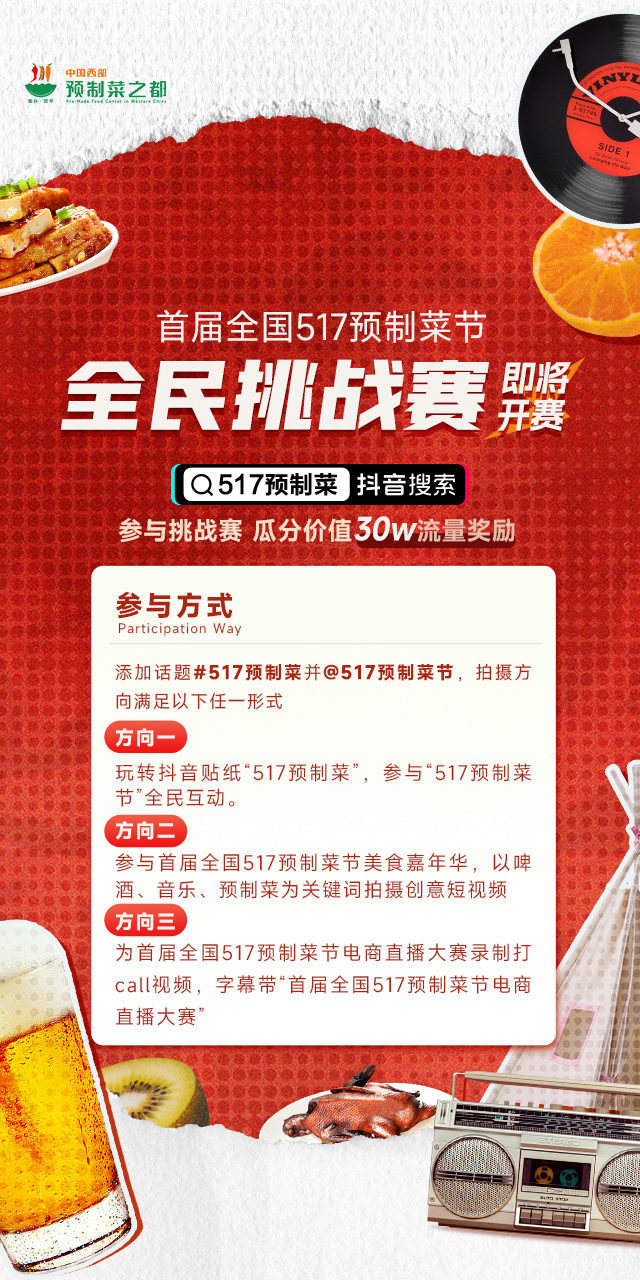 “全国首届517预制菜节”主题活动,旨在为预制菜赋能,为生活添彩,全面促进中国西部预制菜之都高质量发展。在酷暑来临之际,为全国食客创造一场来自中国西部预制菜之都的美食盛宴,更好地满足人民对美好生活的向往。