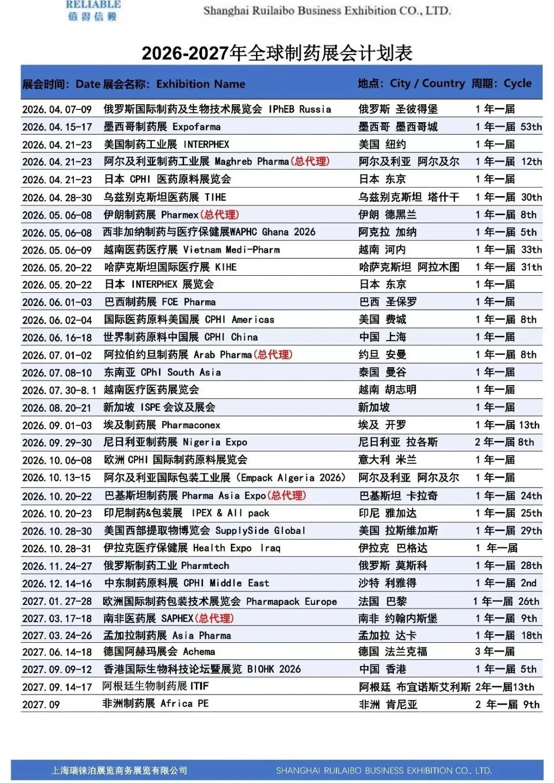 您好!欢迎您参加2026年4月21-23日阿尔及利亚制药工业展,为确保您顺利完成参展、考察活动,现将此次展会的具体通知如下: