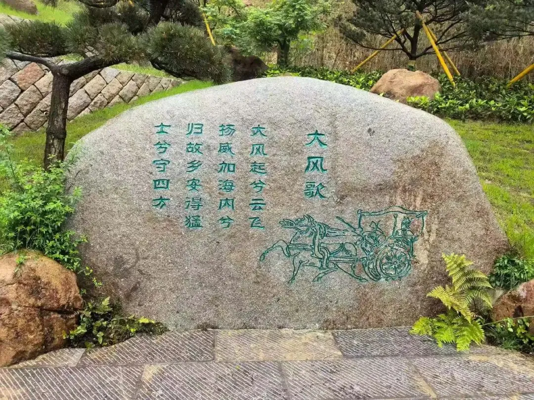 沿主园路前行,依托场地原有陡坡地形打造的岩生园别具野趣。园中散置的景观石刻有汉代诗句——一侧镌刻刘邦《大风歌》“大风起兮云飞扬”,豪迈之气扑面而来;另一侧则融入南朝诗人谢灵运游览徐州戏马台时所赋诗句。武韵文心,相映成趣。岩生园不仅是景观,更是徐州从“一城煤灰半城土”到“一城青山半城湖”生态转型的微缩叙事。