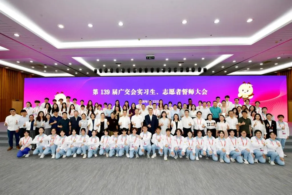 4月12日,第139届中国进出口商品交易会(下称“广交会”)实习生、志愿者誓师大会在广交会展馆隆重举行,学校实习生代表参会。学生代表面向大会庄严宣誓,承诺以饱满的热情、专业素养投身展会服务,为第139届广交会顺利举办奉献青春力量,展现新时代青年学子的责任与担当。
