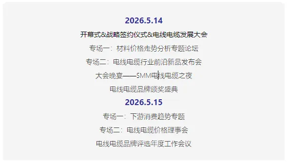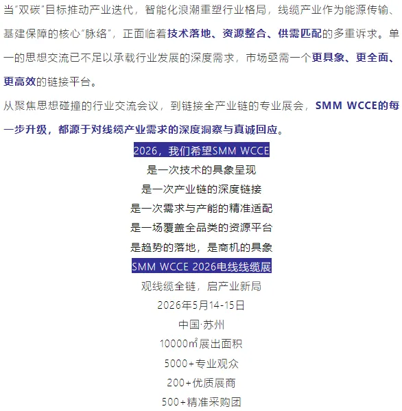 【05.14-05.15】SMM WCCE 2026电线电缆工业展览会暨产业发展大会暨电线电缆品牌营销大会