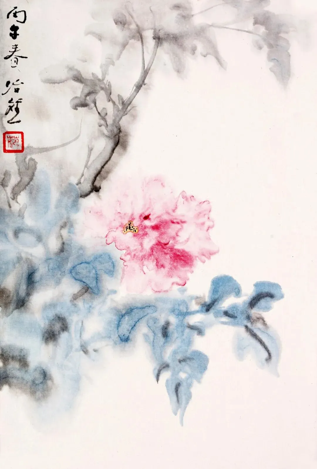 方政和《红衣浅复深》 68×68cm 生宣纸本