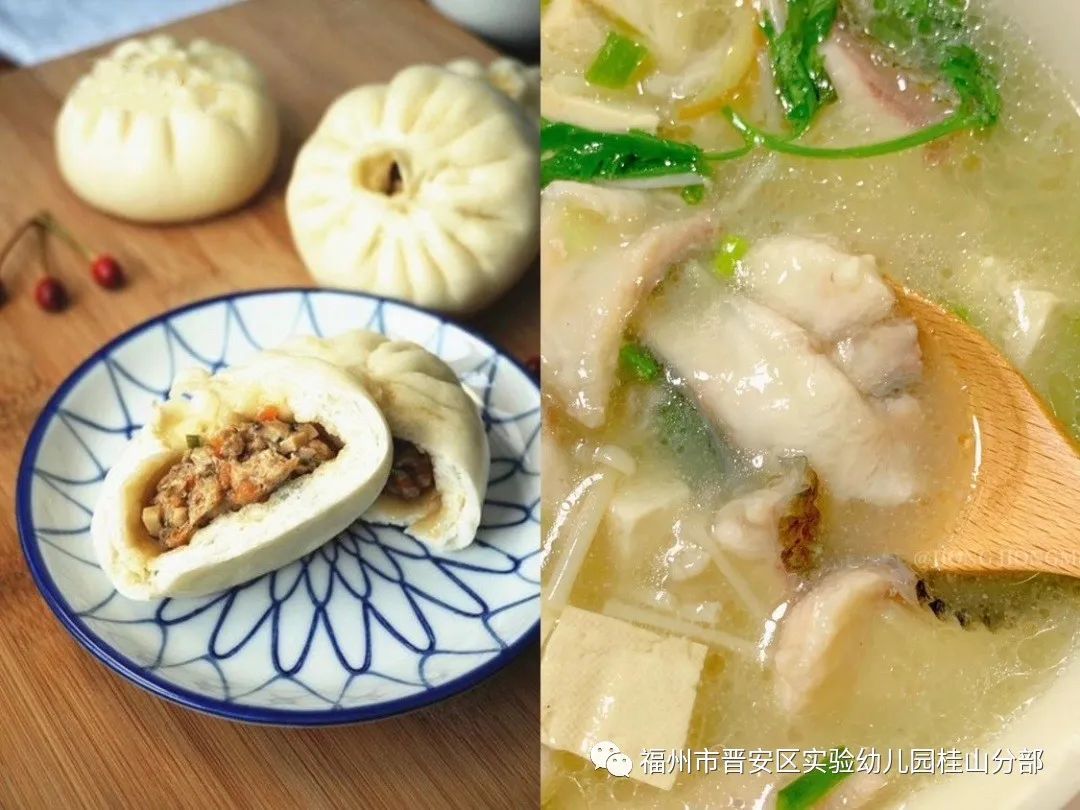 香菇猪肉包、豆腐香菇滑鱼汤、香菇炒花瓶菜
