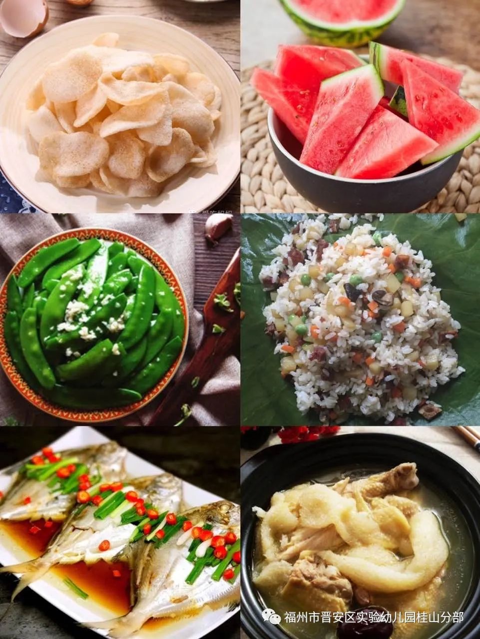 大、小班:腊肠荷叶饭、蚝油西兰花、土鸡竹荪汤