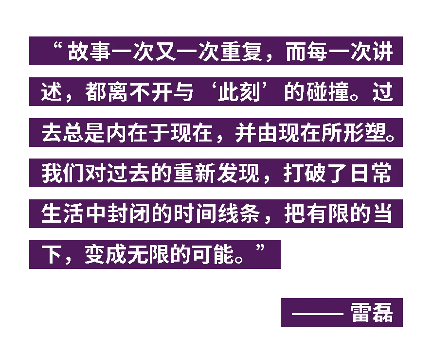 在反复重述之中,雷磊的作品始终保持着一种少见的轻盈。他的“轻”没有回避现实的重量,而是在复杂、沉积甚至带着噪点的材料之中,仍保留一种穿透性的感受力,它体现为一种不依赖宏大叙事自证的讲述方式——不把图像从现实中抽离,而是在最普通、最现成的材料里,让观众重新获得进入叙事、甚至重新组织叙事的可能。